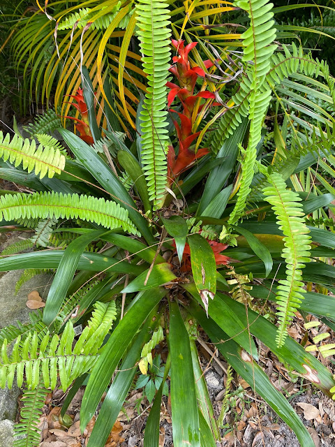 Also there was a bromeliad that never bloomed and wasn't doing great, so we tossed it in the backyard and suddenly it is blooming all over the place, enjoying its neglect.